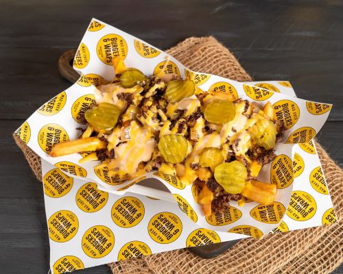 Classic crispy fries topped with American cheese sauce, chopped smash beef patty, caramelized grilled onions, smash sauce and pickles.